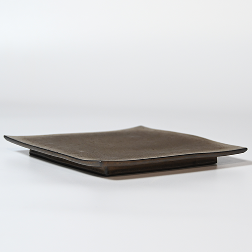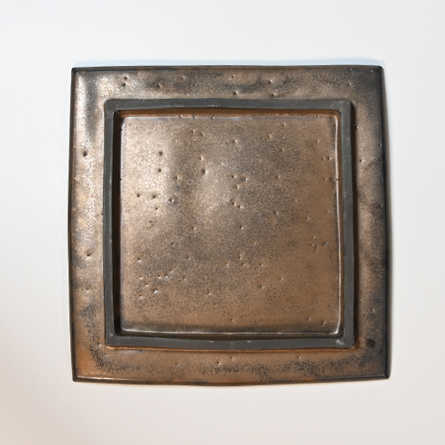 独自の金メタリック釉を掛けた正方形皿
